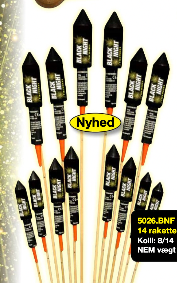 14 RAKETTER I 3 FORSKELLIGE STØRRELSER, MED 8 FORSKELLIGE EFFEKTER… NOGET FOR ALLE!
